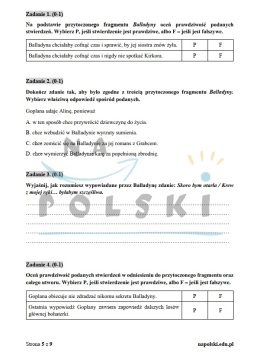Przykładowy egzamin ósmoklasisty dotyczący dramatu "Balladyna" Juliusza Słowackiego