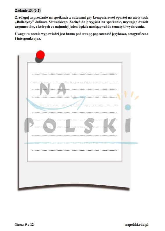 Ten arkusz możesz kupić też w wersji podstawowej - bez tematu zaproszenia i przemówienia. Przygotowałam również materiał edukacyjny, jakim jest sprawdzian z "Balladyny" - można go kupić w komplecie z testem ósmoklasisty.