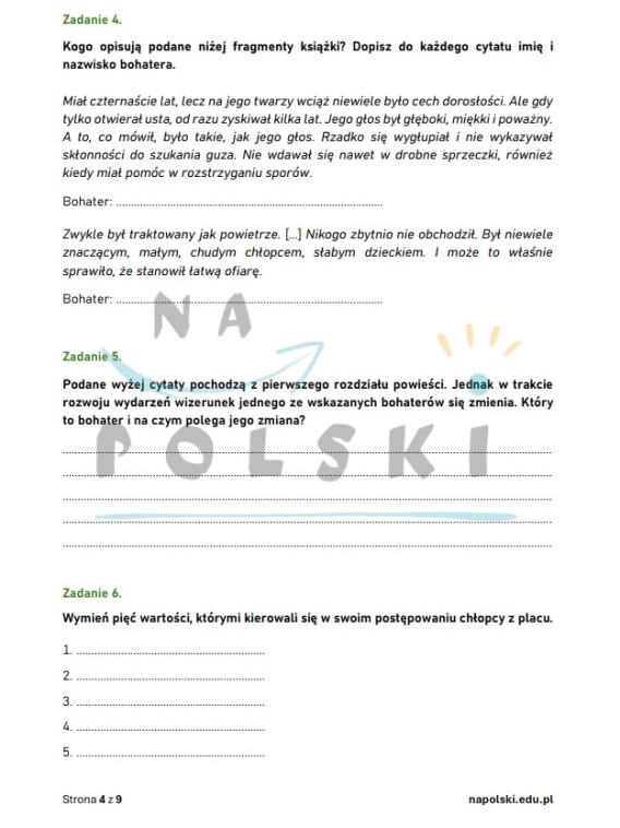 Dla klas siódmych i ósmych świetnym uzupełnieniem sprawdzianu będzie przykładowy arkusz egzaminu ósmoklasisty dotyczący "Chłopców z Placu Broni". Oba materiały - sprawdzian oraz próbny egzamin - można kupić w zestawie, w atrakcyjniejszej cenie.