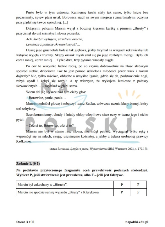 Przykładowy egzamin ósmoklasisty z "Syzyfowych prac" Stefana Żeromskiego